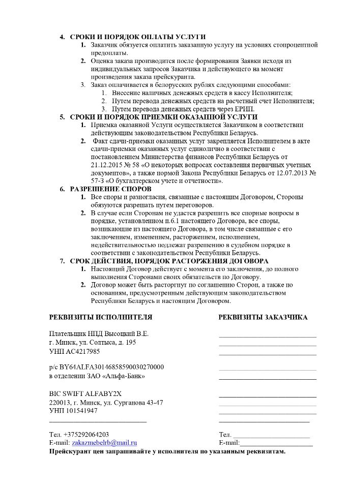 Счёт на оплату с реквизитами выставляется исполнителем перед началом работ, оплачивается заказчиком удобным для него способом!